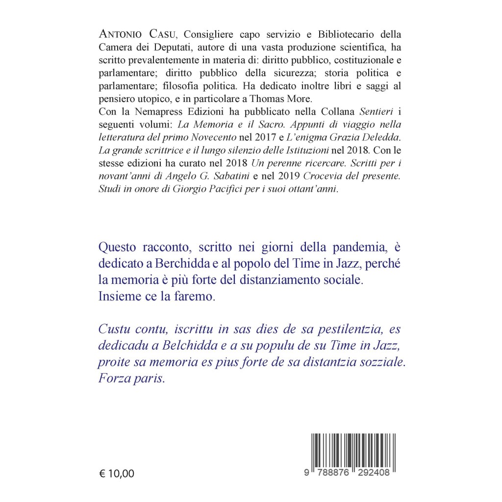 Nel suo libro, Antonio Casu, un vero e proprio esponente del “popolo del jazz”, ci guida attraverso una settimana di festival, raccontando le emozioni e l'atmosfera unica che permeano l'evento. Casu, discendente del noto studioso di lingua sarda Pietro Casu, non si limita a descrivere la musica, ma si immerge profondamente nelle tradizioni del suo paese.