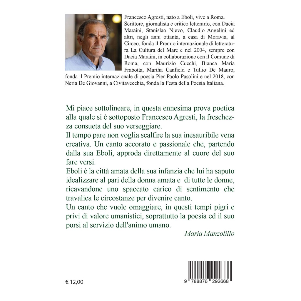 Come sottolinea Maria Manzolillo nella quarta di copertina, l'arte di Agresti si distingue per la sua capacità di toccare il cuore. Ogni poema è una finestra aperta sulle emozioni più profonde, creando una connessione immediata tra il lettore e il messaggio dell'autore. La poesia di Agresti non è solo una forma d’arte, ma una vera e propria esperienza di vita.